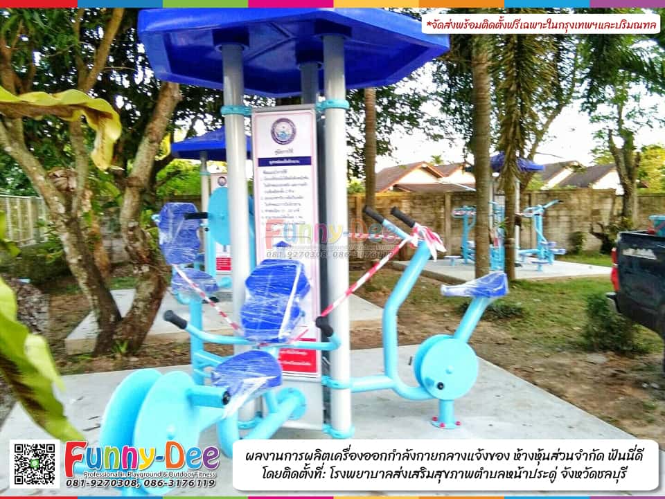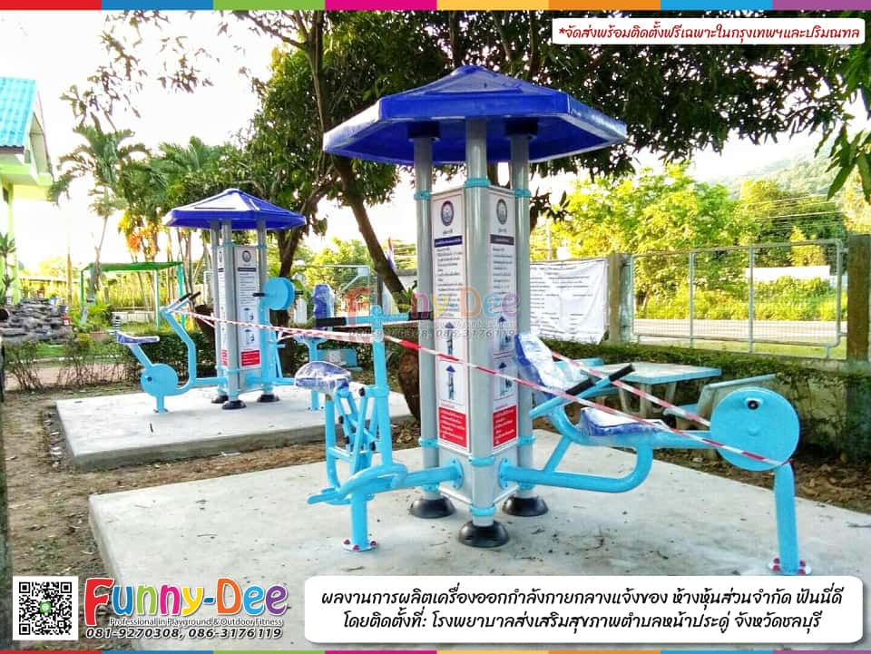 ผลงานการผลิตเครื่องออกกำลังกายกลางแจ้งของหจก.ฟันนี่ดี โดยติดตั้งที่ รพ.สต.หน้าประดู่